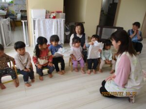 お当番さんのあいさつ、うたのお手伝いをぱんだ組さんと一緒にやったうさぎ組さん。しっかりバトンタッチできそうですよ。頼もしいうさぎ組さんです。