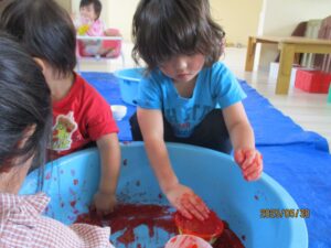 赤の食紅少し多すぎ…でも子ども達は、抵抗なく遊んでくれました。