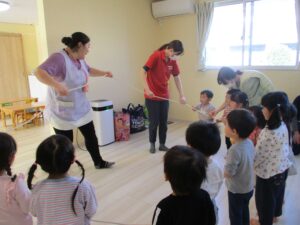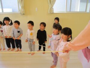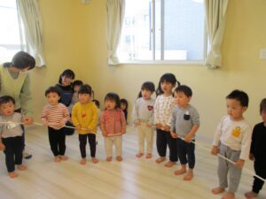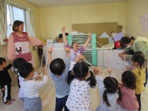 「アップ アップ アップ…ダウン ダウン ダウン…」音楽に合わせてロープを動かしていきます