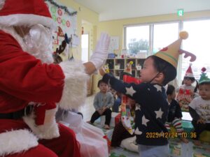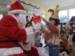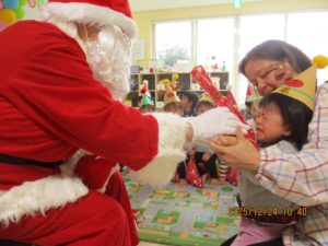 泣いてしまった子もプレゼントはしっかりうけとれました。